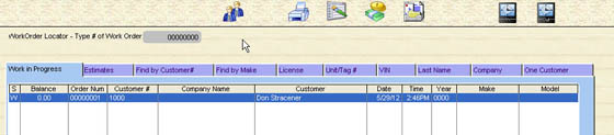 Click on the Email Icon, third from the left with the customer selected in the work order screen.