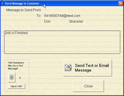 Enter the message you want to send and click on the send text or email button. The repair order software will send the text or email depending on how the customer is set up, you don't have to think about it.
